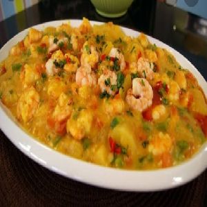 Tradicional prato baiano! Saboroso creme de aipim com camarões refogados ao molho. Servido com arroz branco.